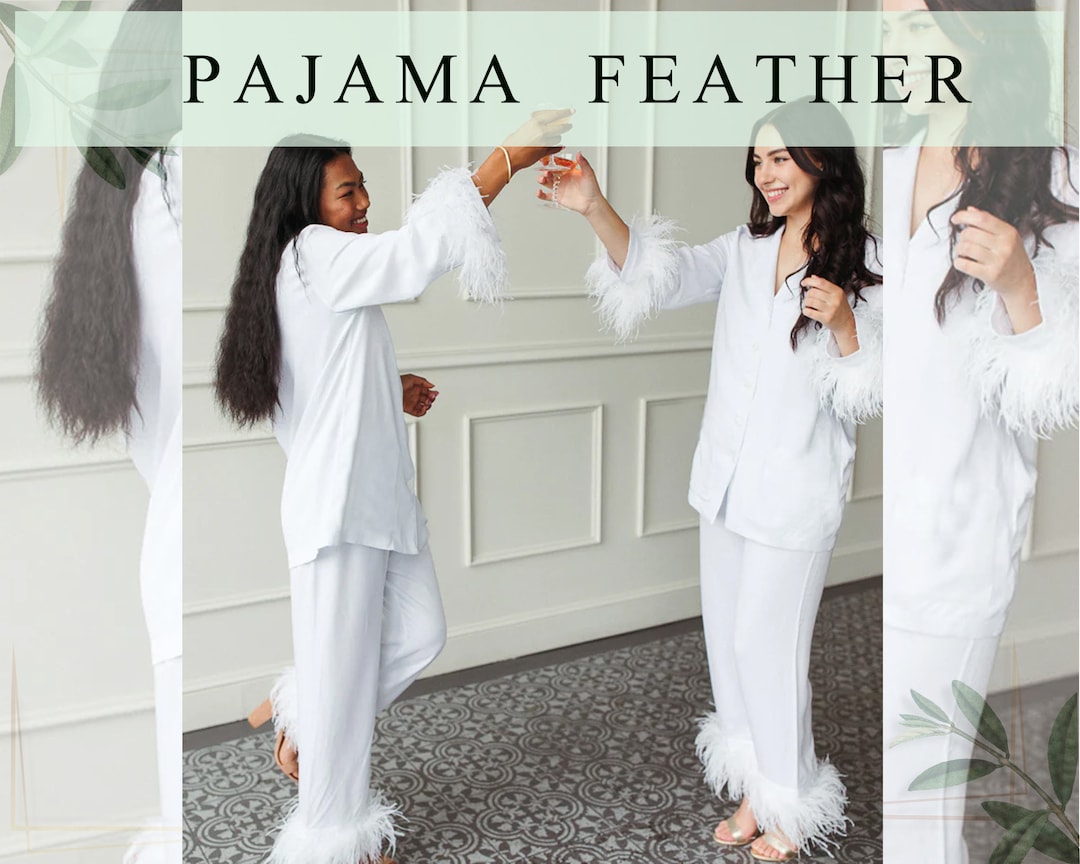 Pajamas With Feathers, Bridesmaid Feather PJ Set, Feather Cuff Pajamas, Bridesmaid Gift, Satin Red Feather Pajamas Check out our red silk feather pajamas selection for the very best in unique or custom, handmade pieces from our pajamas & robes shops. Featuring a long sleeved, button up top and matching bottoms both in a red satin material with feather trim detailing. Find a great selection of women's feather pajama sets at nordstrom.com. Add a luxe feel to. Red Feather Pajamas.