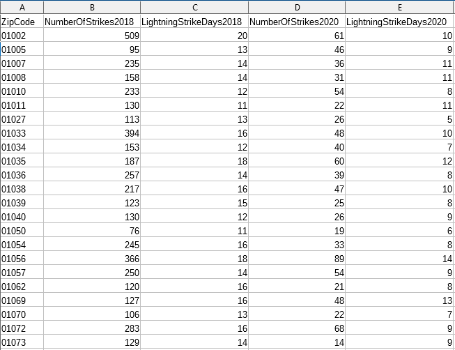Lightning Strikes by Zip Code