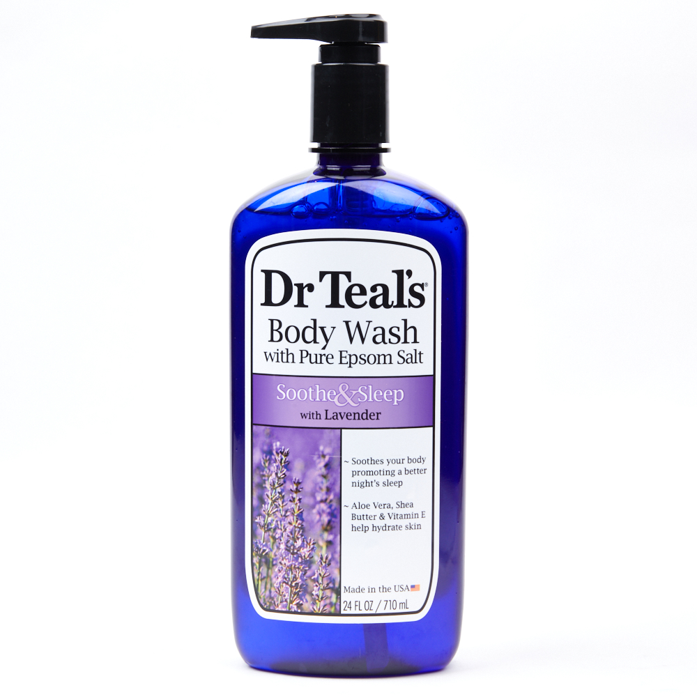 Dr Teal's® Pure Epsom Salt Soothe & Sleep Lavender Body Wash, 24 fl oz Dr Teal's Lavender Epsom Salt Body Wash Relaxing epsom salt revitalizes aching muscles and refreshes. Aloe vera, shea butter and vitamin e nourish and moisturize, while pure epsom salt (magnesium sulfate usp). A blend of melatonin, lavender and chamomile essential oils. Dr teal's pure epsom salt body wash soothe & sleep with lavender. Dr teal's pure epsom salt body wash soothe & sleep with lavender 710 ml. Dr Teal's Lavender Epsom Salt Body Wash.