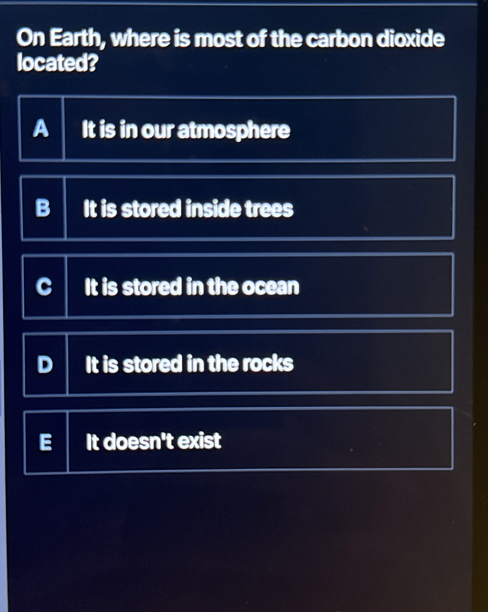 Solved On Earth, where is most of the carbon dioxide
