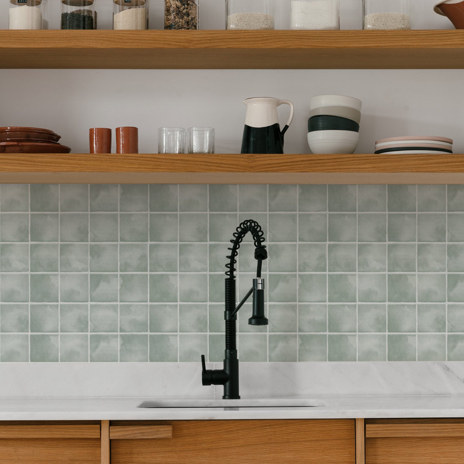 Sage Color Tiles Backsplash Livettes Wallpaper