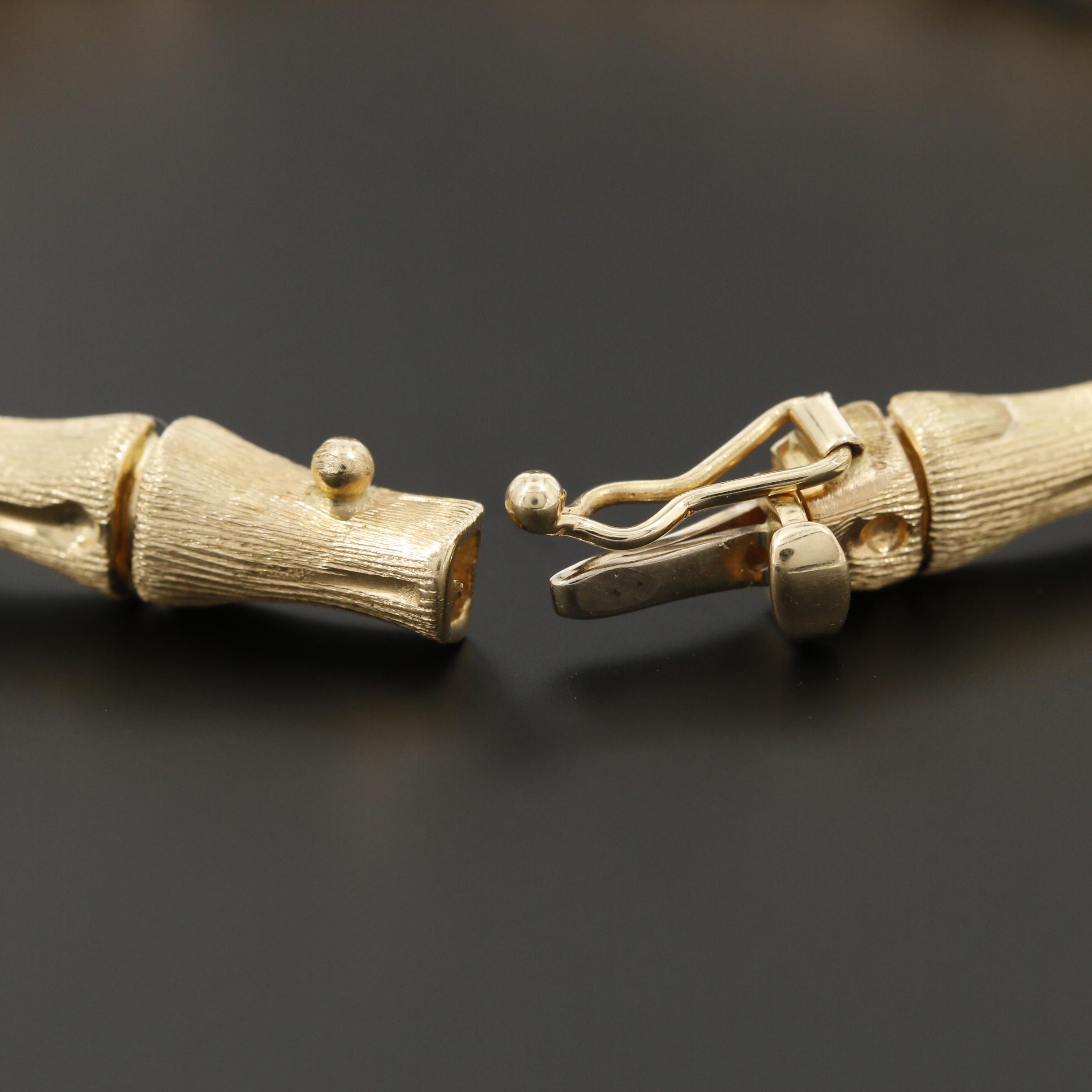 14K Yellow Gold Bamboo Style Bracelet EBTH Fine Jewelry Bamboo Bracelet From graceful necklaces to intricately designed bracelets, our jewelry brings a touch of natural enchantment to your appearance. Like a piece of artwork carefully painted on this bracelet, white gold bamboo with diamond leaves are set against panels of jadeite jade, making the. Pieces inspired by fashion that will make you look incredible, shine and let leri'a fine jewelry do. Fine Jewelry Bamboo Bracelet.