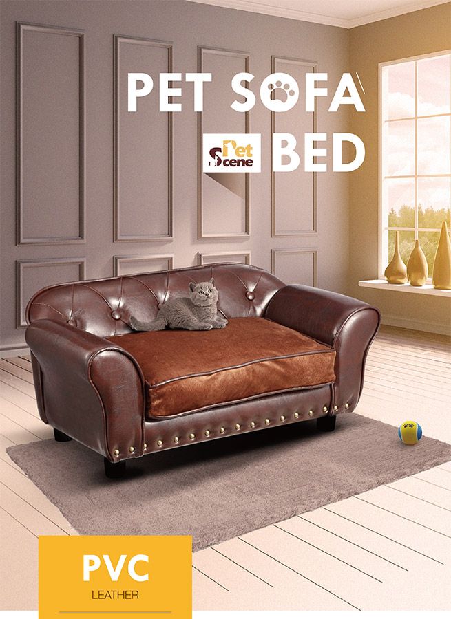 Petscene Luxury Pet Bed PVC Leather Dog Cat Bed Sofa Soft Lounge Couch