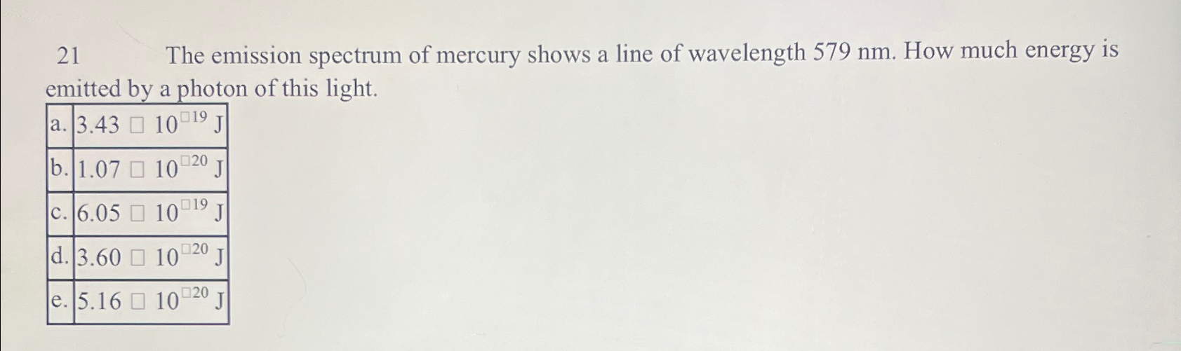 Solved 21 The emission spectrum of mercury shows a line of