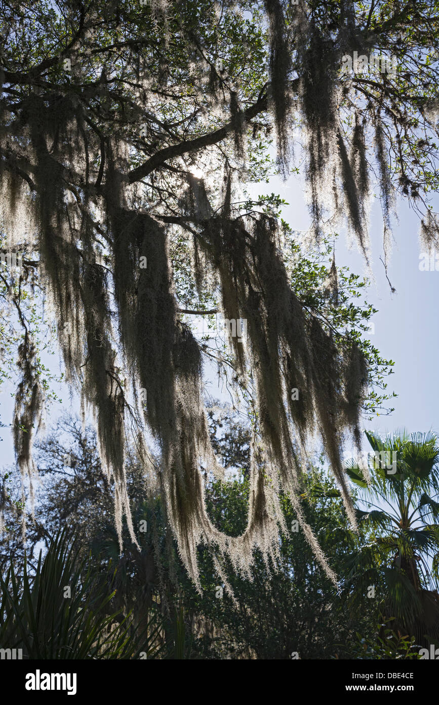 Old Spanish moss covered live oak trees dominate the landscape in