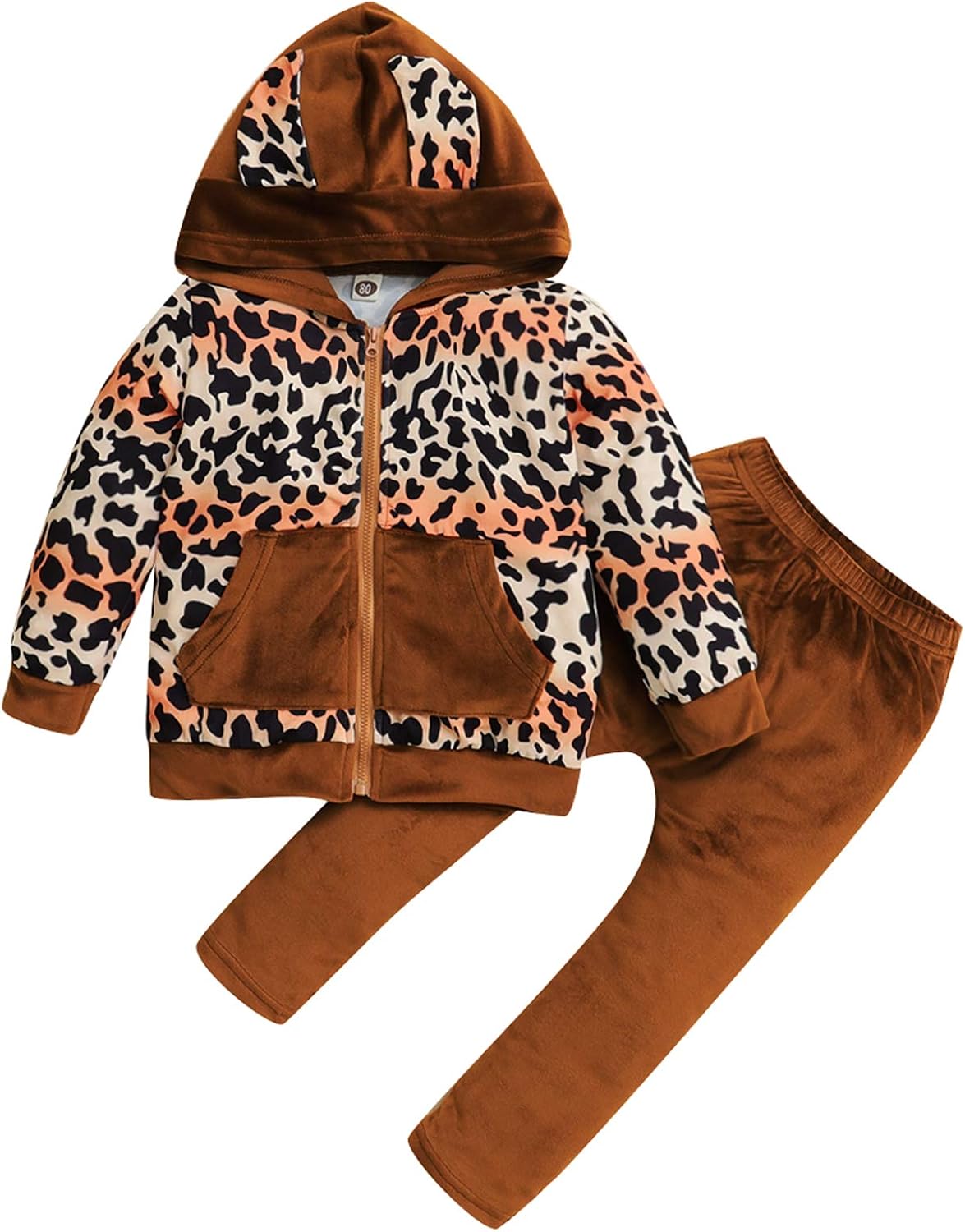 2Pcs Toddler Girl Casual Outfit Baby Hoodie Shirt Leopard