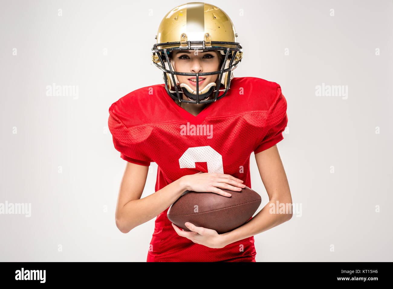 Beautiful female american football player Stock Photo Alamy