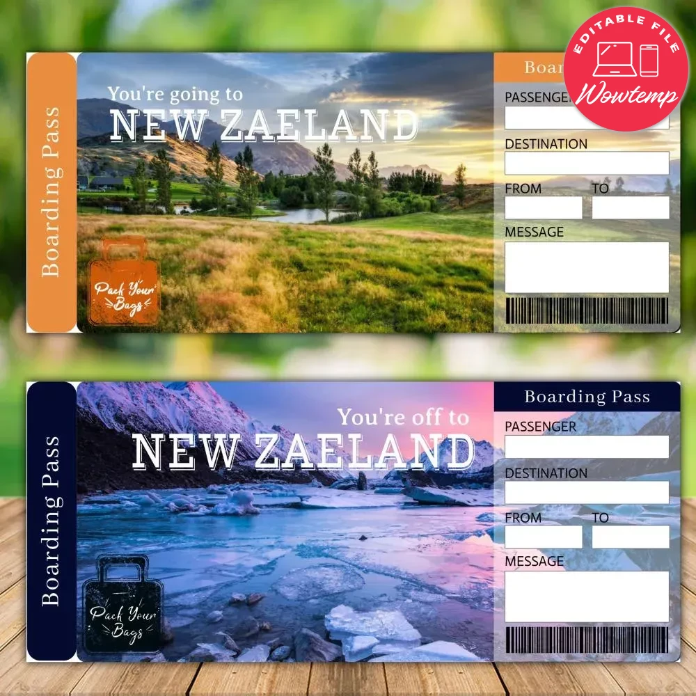 Editable NEW ZEALAND Surprise Gift Ticket Instant Download Wowtemp