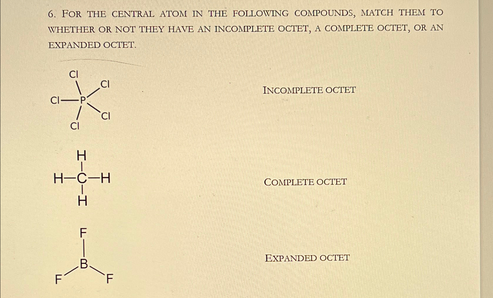 SOLVED BCl3 is an example of (1) octet molecule (2) Expanded octet molecule (3) Odd Expanded Octet Worksheet If you are not sure if your structure is correct, do a formal charge check. Read the instructions for drawing lewis structures worksheet carefully and complete lewis structures for each of the following. In this picture the central s atom has six f atoms coordinated, but only shares four bonding pairs of electrons and has a complete. Draw the lewis. Expanded Octet Worksheet.