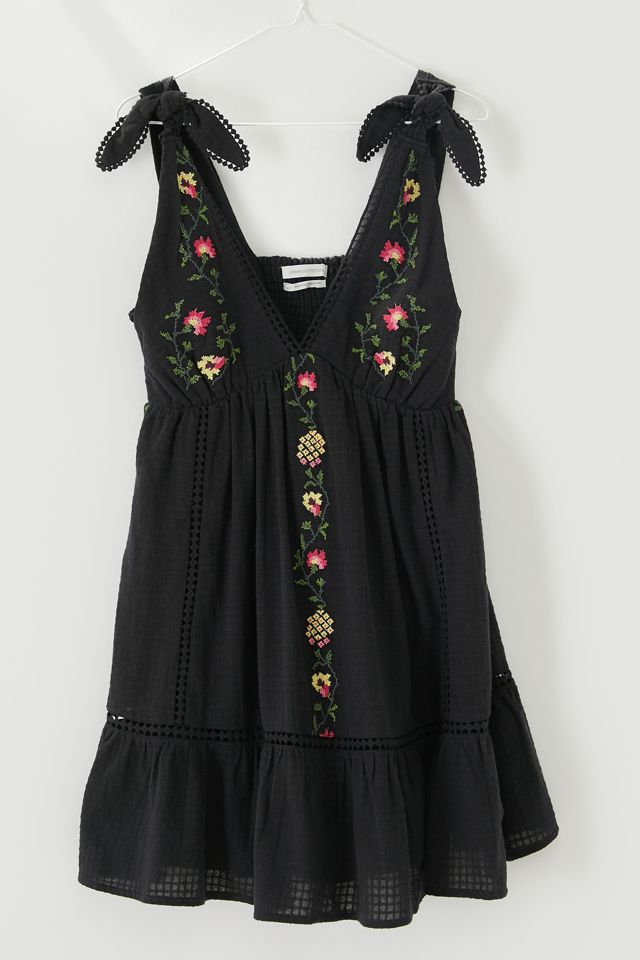 UO Forever Embroidered TieShoulder Mini Dress Urban Outfitters