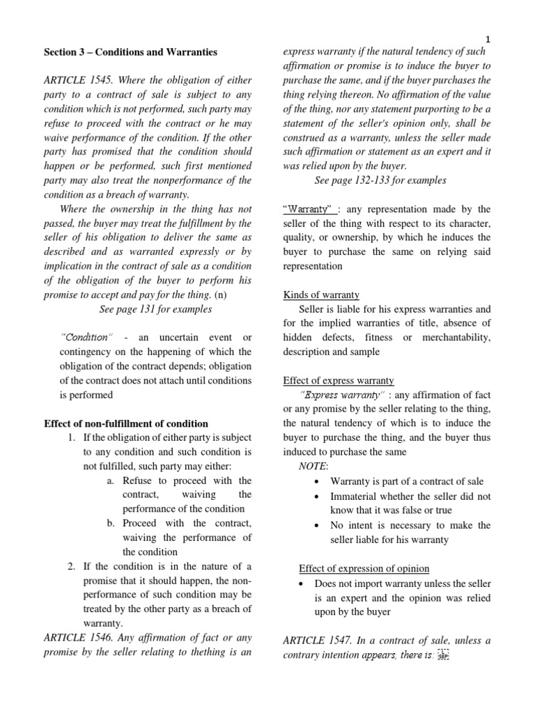 Warranties Reviewer PDF Implied Warranty Civil Law Law)