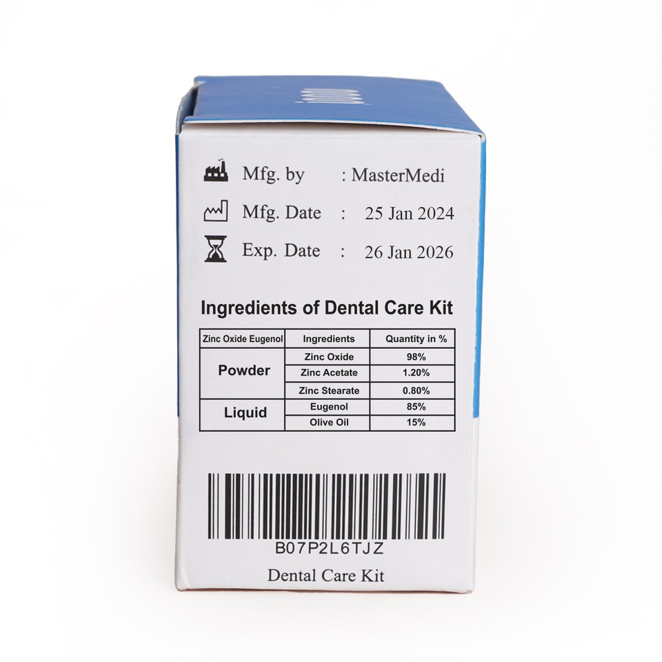 Buy mastermedi Zinc Oxide Eugenol Cement Dental Care Kit Glue For Crowns & Bridges Filling Zinc Oxide Eugenol Cement - Dental Care Kit Zinc oxide eugenol is one dental material used for fillings, bridges, and crowns because it promotes longevity, stability, and function in certain dental procedures. Ki zinc oxide eugenol cement dental care kit glue for crowns & bridges filling. Achieve optimal dental health with our cement dental care kit, designed to provide robust and reliable care for your teeth. Zinc oxide. Zinc Oxide Eugenol Cement - Dental Care Kit.