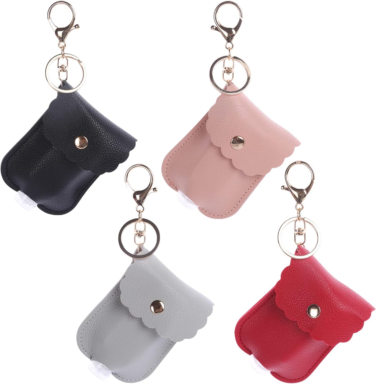 KKC 4 Pcs 30ml Leather Travel Bottle Keychain Holder Set, Empty