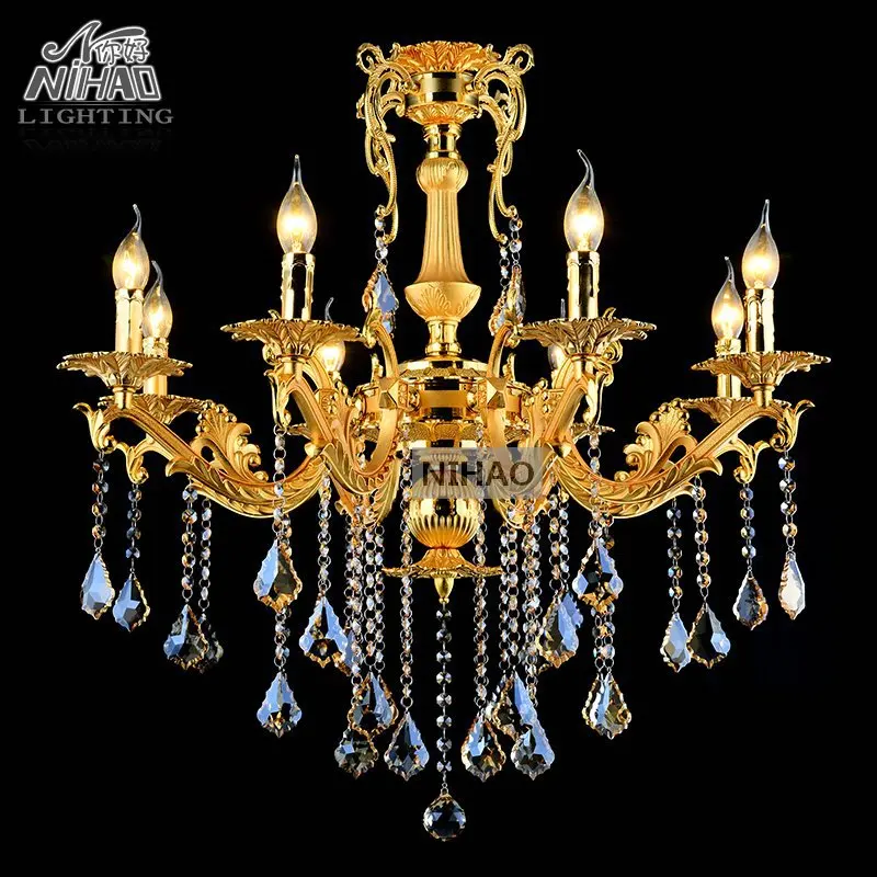 Gold Crystal Chandelier Lighting Fixture 8 Arms Classic Metal