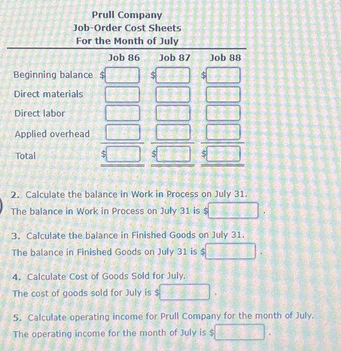 Solved JobOrder Cost Sheets, Balance in Work in Process and