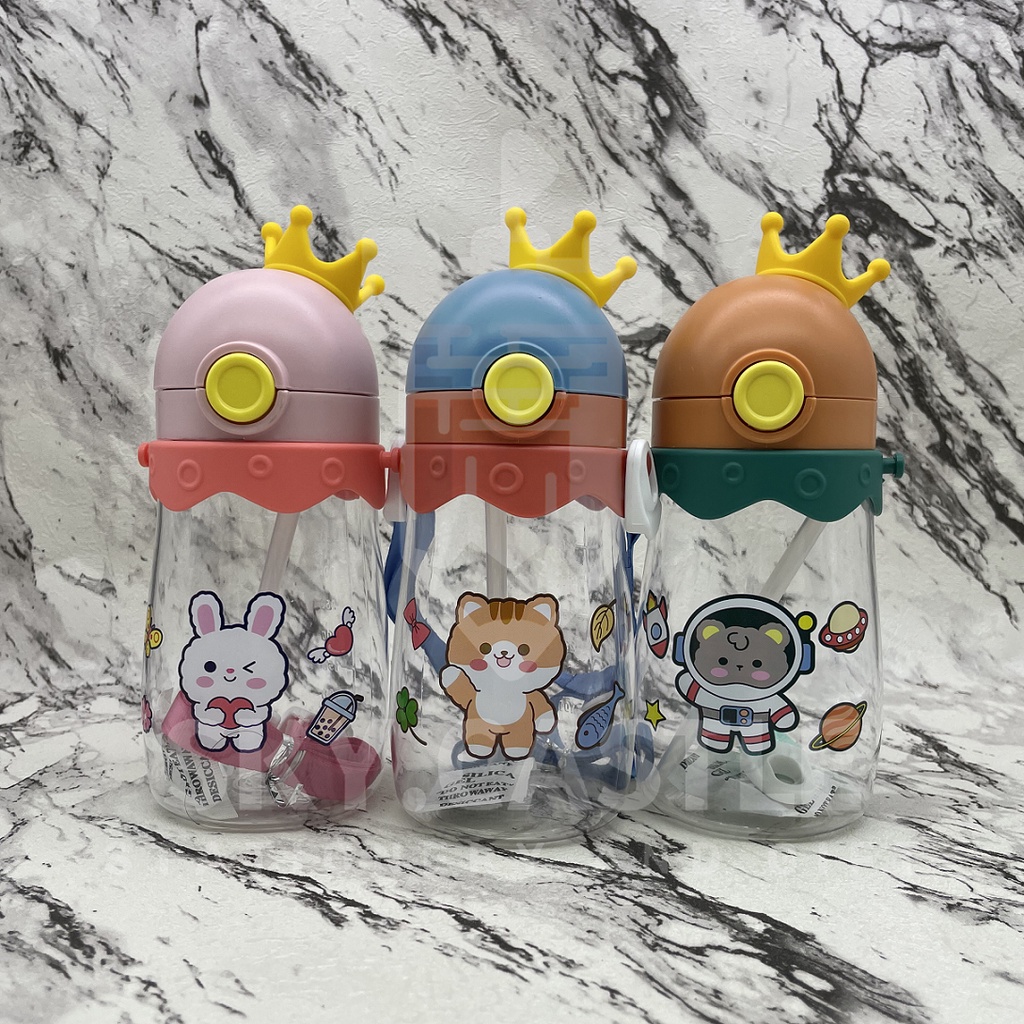 Children's Drinking Bottle With Crown Strap Straw 480ml Shopee