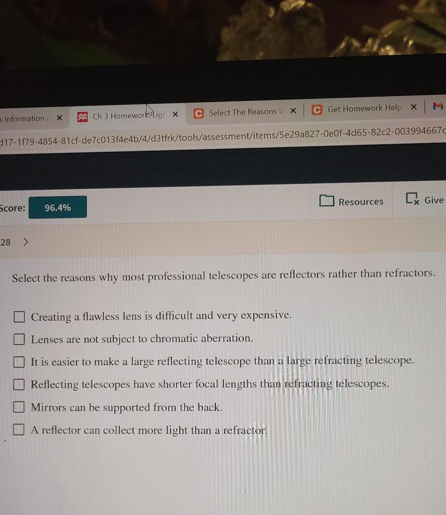Solved Select the reasons why most professional telescopes Why Most Professional Telescopes Are Reflectors Rather Than Refractors Large mirrors are easier to build than large lenses. Select the reasons why most professional telescopes are reflectors rather than refractors. We'll compare key factors such as budget, aperture. Putting it simply, reflector telescope, uses mirrors, while refractor telescope uses lenses. Large telescopes used by professional astronomers are. Both, however, have the same purpose, which is to explore the skies. Why Most Professional Telescopes Are Reflectors Rather Than Refractors.