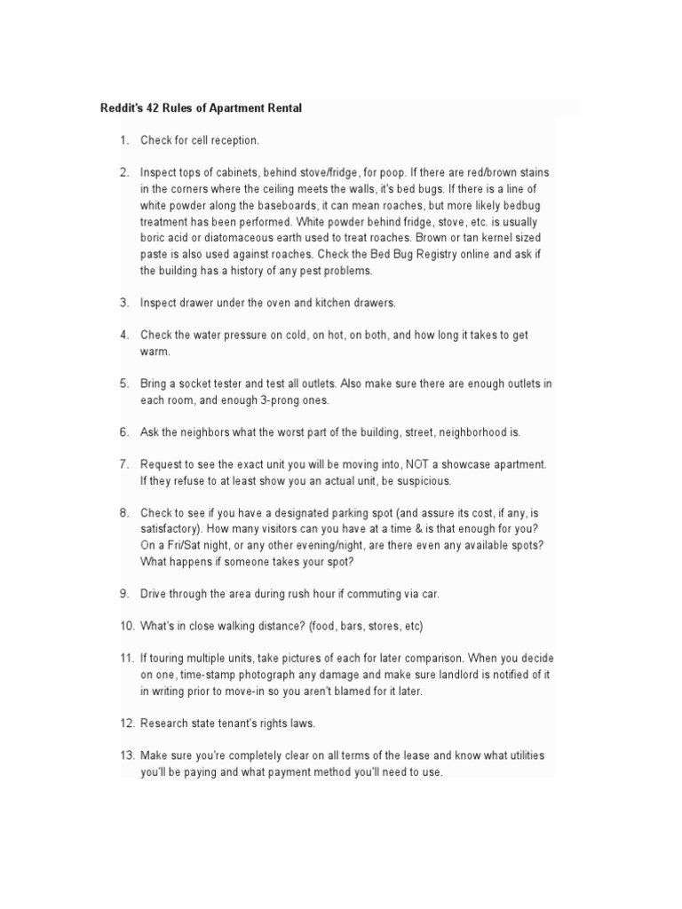 Reddit's 42 Rules of Apartment Rental Landlord Lease