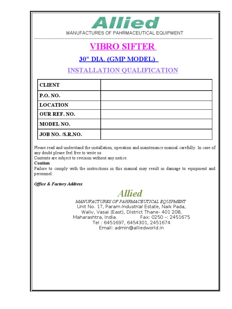 (DOC) INSTALLATION QUALIFICATION (IQ) PROTOCOL FOR MECHANICAL SIFTER Installation Qualification Form The objective of this protocol is to define the installation qualification (iq) and operational qualification (oq) requirements. Installation qualification ensures the correct installation of your device in its operational space. This installation qualification (iq) details the activities required to execute the iq phase of the qualification of the [equipment/service title] at. Installation qualification (iq) is a critical phase in the. Installation Qualification Form.