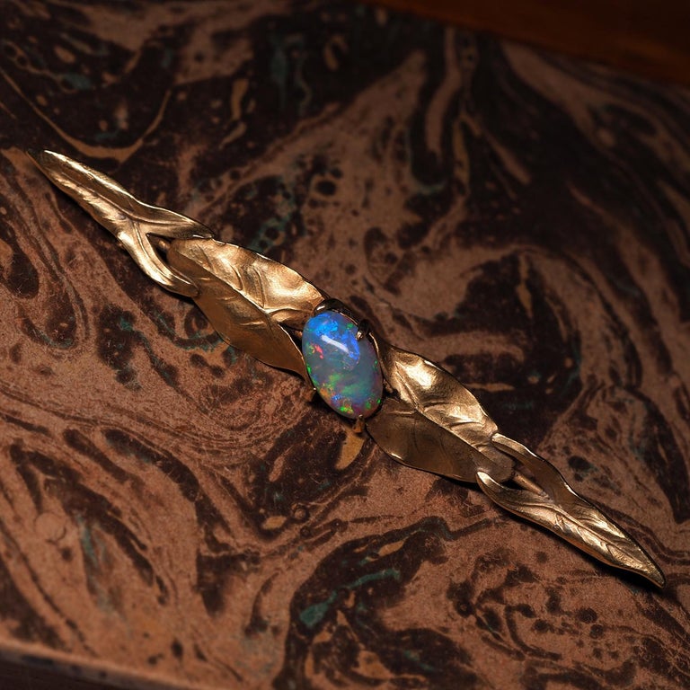 Art Nouveau Opal Gold Brooch Australian Precious Opal Unisex Arnould