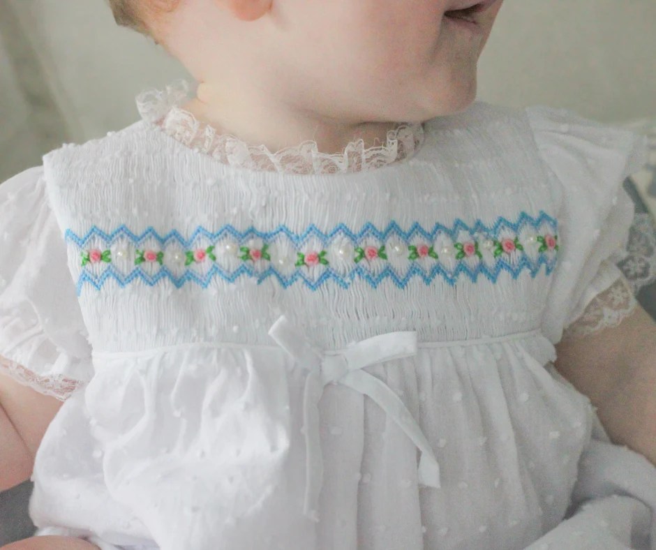 PO114 PEARLS & LACE SMOCKED DRESS Little Bear Smocks