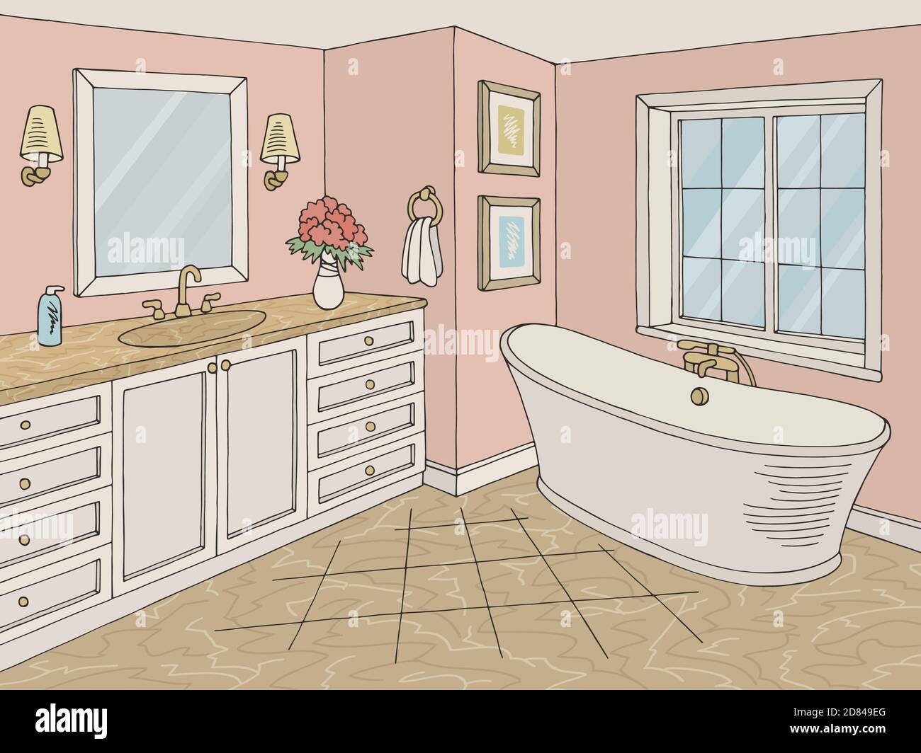 Bathroom graphic home interior color sketch illustration vector Stock