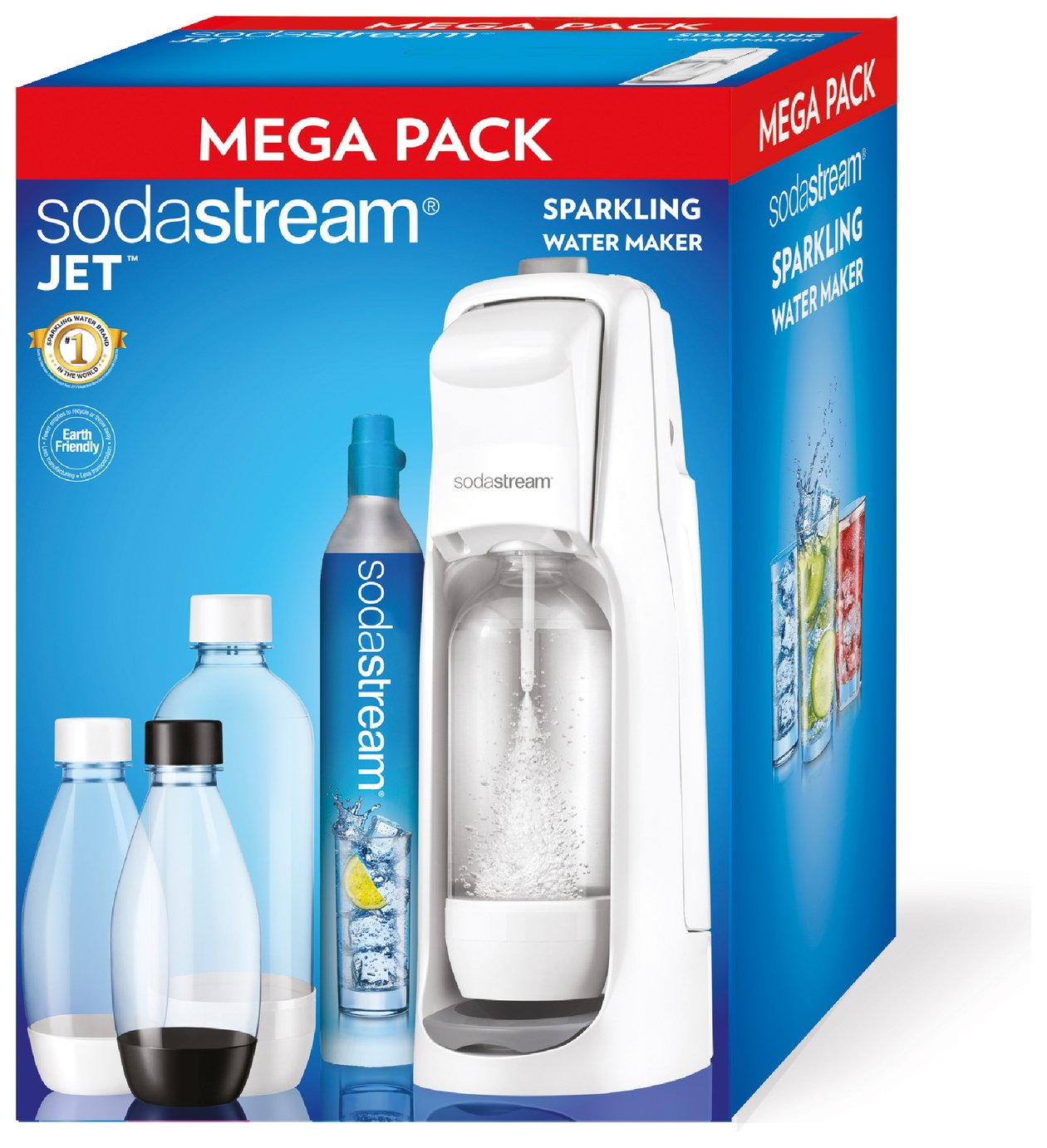 SodaStream JET white raspberry megapack Sodastream Sparkling Water Maker Jet White Megapack Makes up to 60 litres; Sodastream jet machine megapack white. Turns tap water into sparkling water in seconds; Make your own fresh sparkling water at home. Turn tap water into exciting sparkling water with a sodastream sparkling water maker. Shop our range of sparkling water makers, bottles and flavours or buy a co2 gas cylinder. Compare between sodastream's sparkling water. Sodastream Sparkling Water Maker Jet White Megapack.
