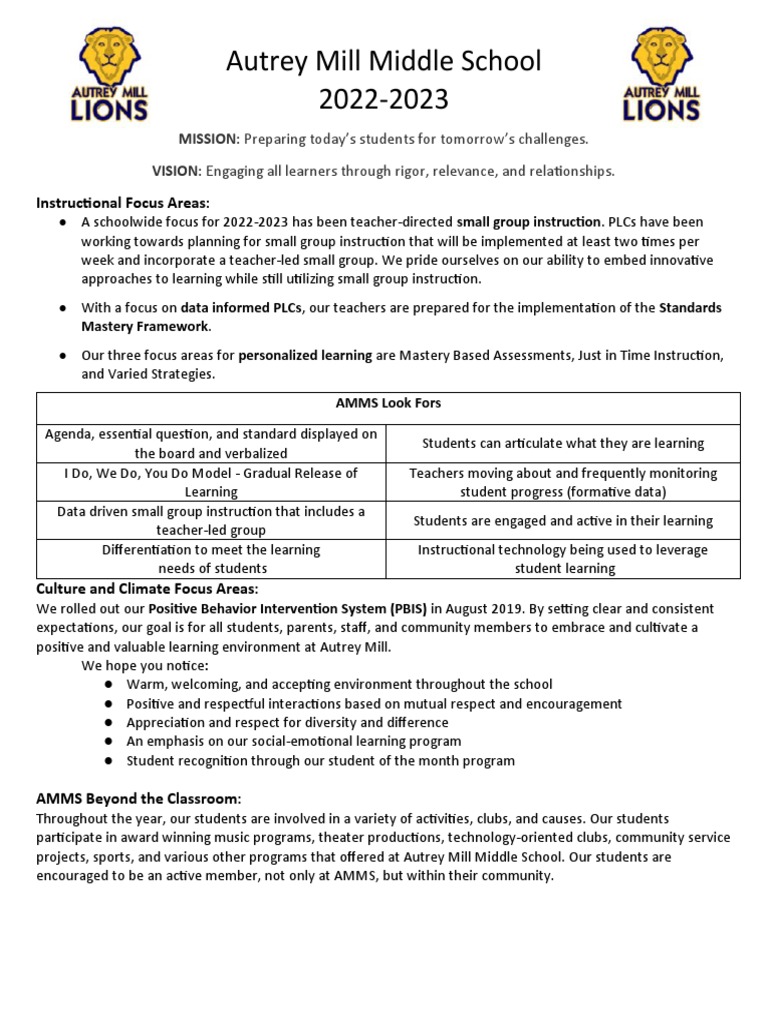 Autrey Mill Middle School One Pager 20222023 PDF Learning Pedagogy