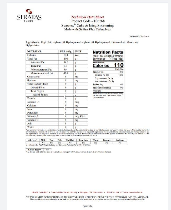 Stratas Sweetex Golden Flex Icing Shortening 50 lb. Icing, Baking Sweetex Shortening Ingredients Elevate your baking creations to new heights. a formulated cake and icing shortening made from a unique blend high oleic soybean and cottonseed oils. Sweetex Shortening Ingredients.