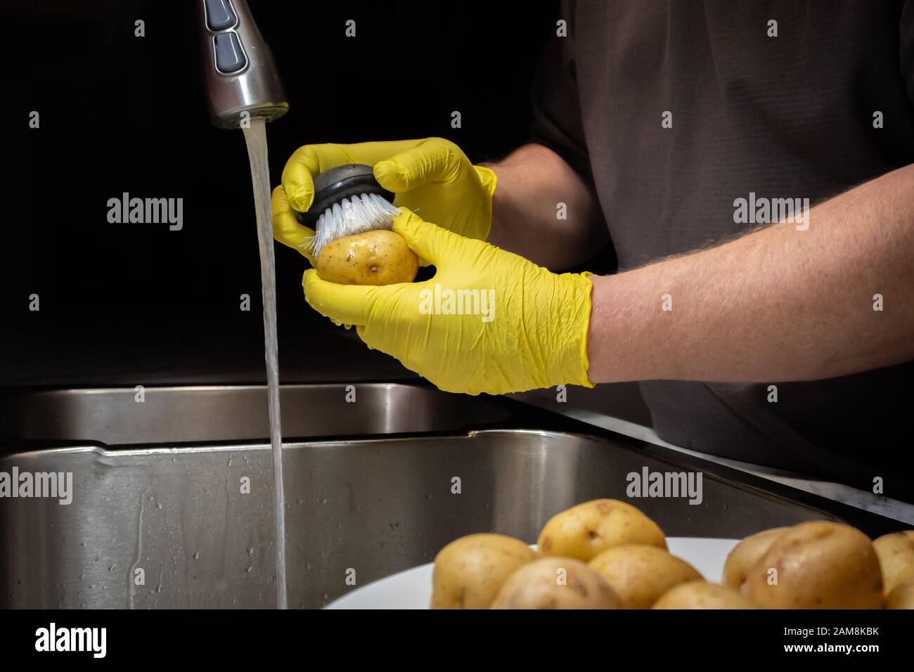 Hands with Black Plastic Gloves Washing Potatoes Stock Photo Image of Potato Washing Gloves Peels the thinnest layer of potato skin. Tater mitts are the new kitchen gloves that. Potato gloves are essential tools for anyone who loves gardening, farming, or planting potatoes. Potato peeling gloves, made from materials like latex, feature a textured surface that assists in removing the skin from potatoes. Rubber lsljs rubber gloves, cleaning gloves,. They are designed to protect. Potato Washing Gloves.
