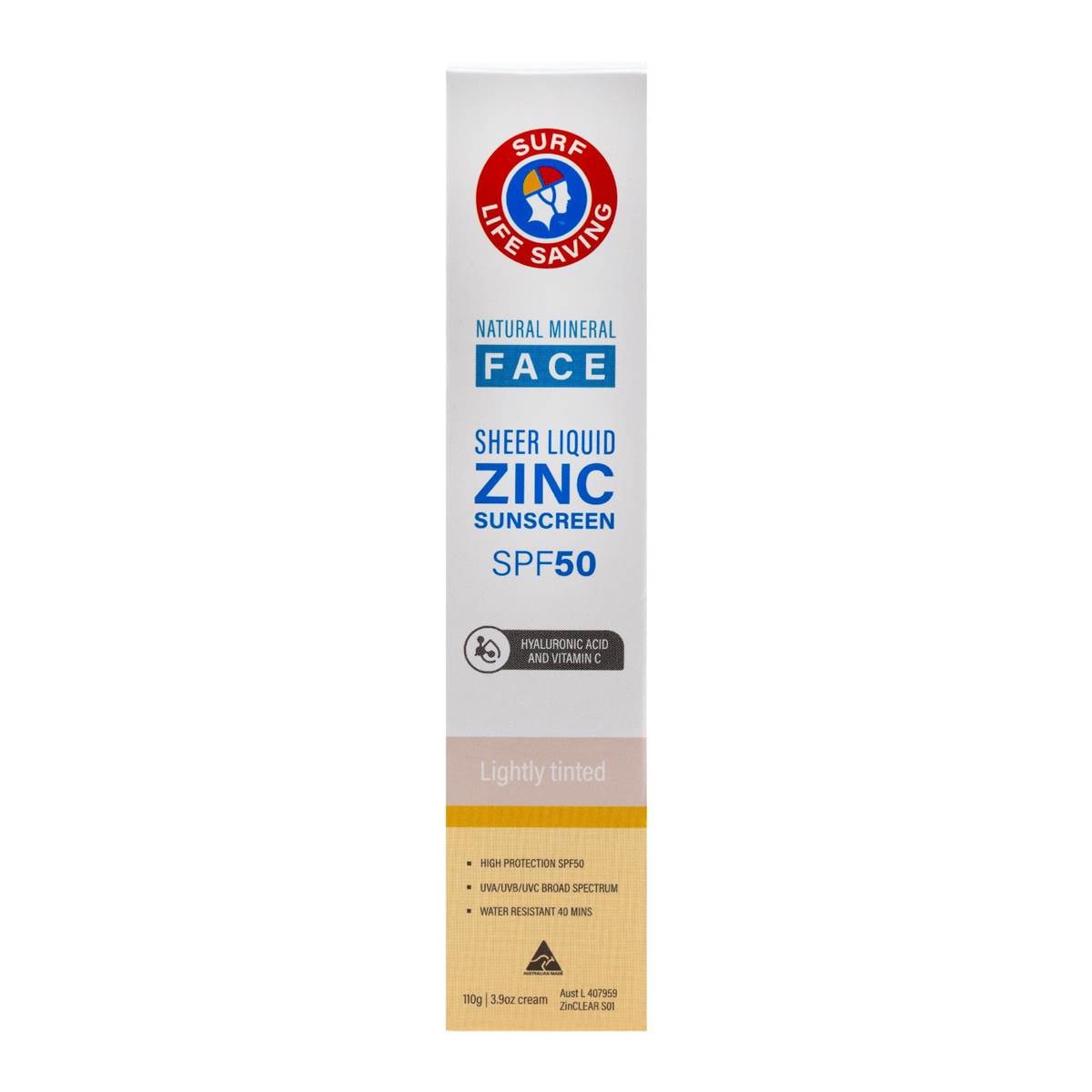 Surf Life Saving Natural Mineral Face Sheer Liquid Zinc Sunscreen Spf50