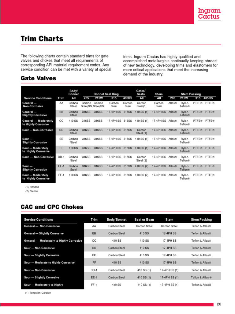 Gate Valve Trim Chart PDF Valve Materials