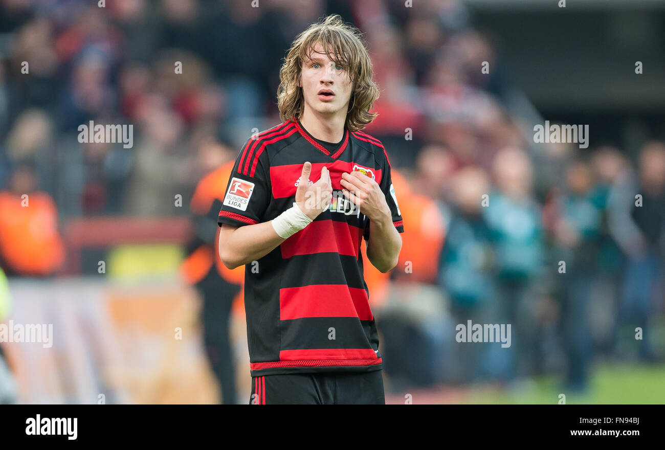 Leverkusen, Germany. 13th Mar, 2016. Leverkusen's Tin Jedvaj after