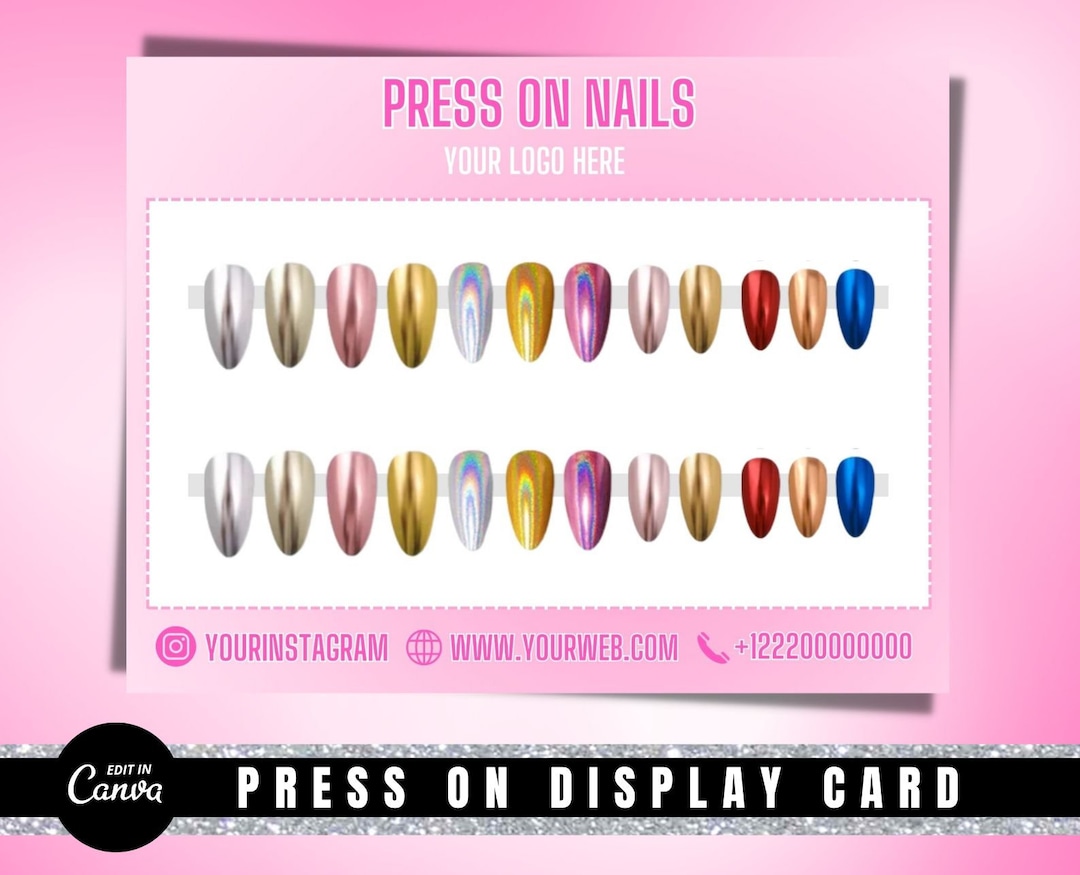 Editable Press on Nails Display Card Template, Press on Nail Packaging
