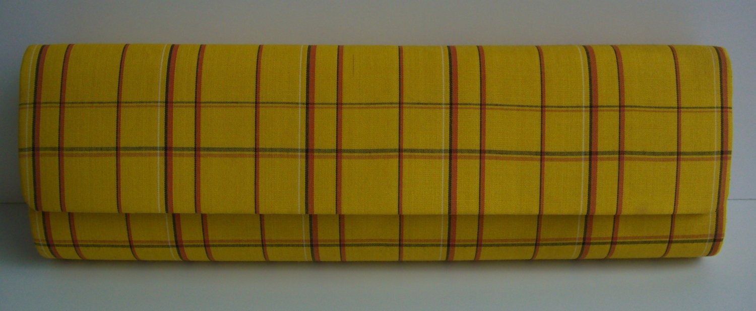 Clutch purse yellow and orange plaid silk 1950s vintage