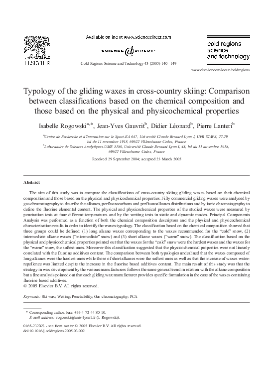 (PDF) Typology of the gliding waxes in crosscountry skiing Comparison