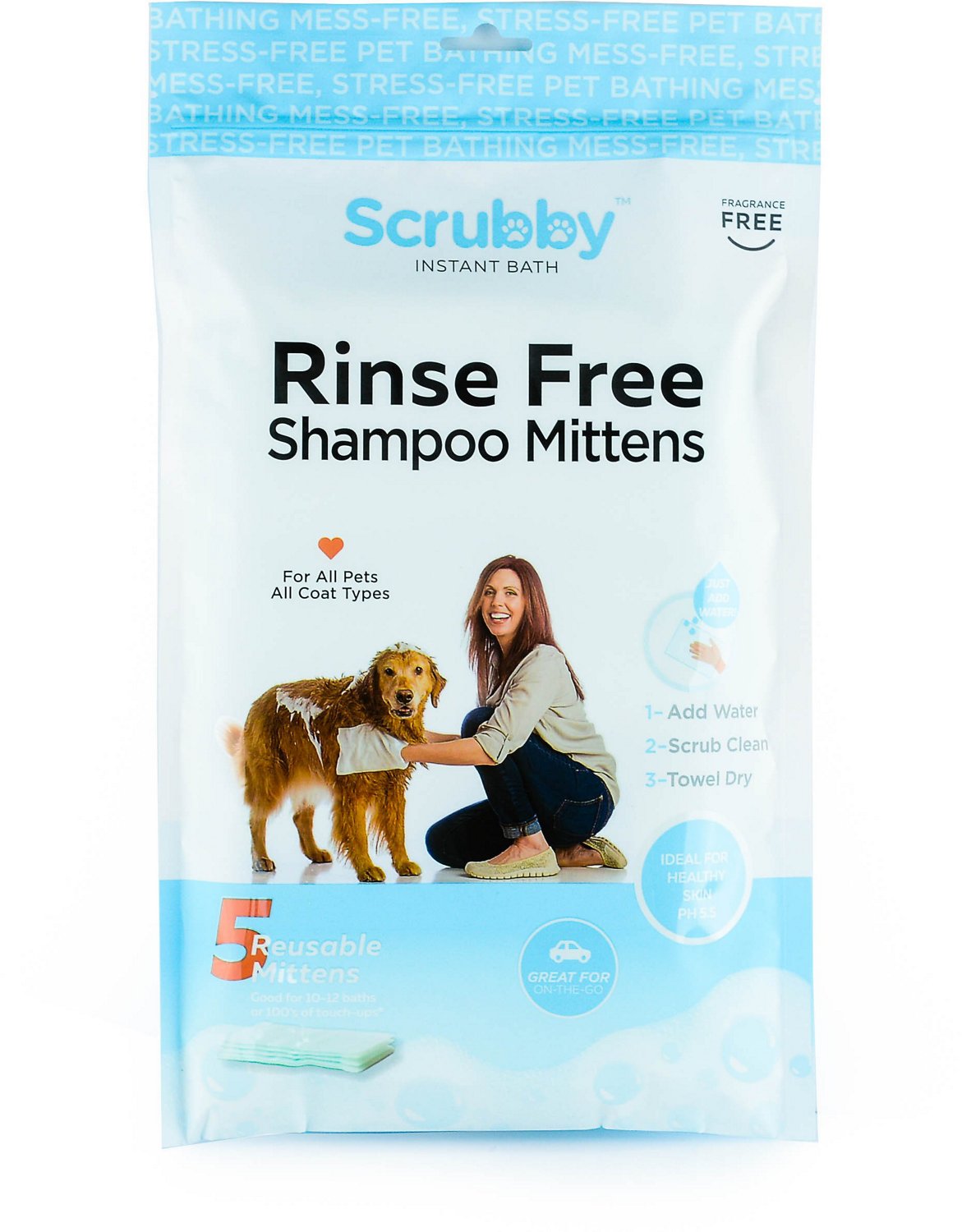 Scrubby Rinse Free Instant Pet Bath Mittens 5Pack Academy