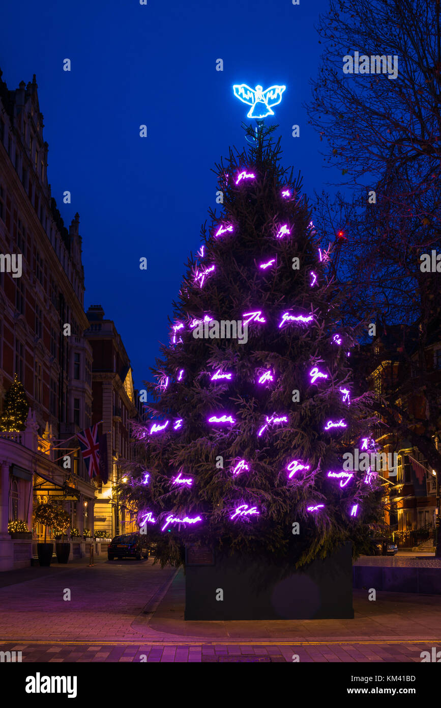 LONDON, UK NOVEMBER 30, 2017 Christmas tree on Mount Street in