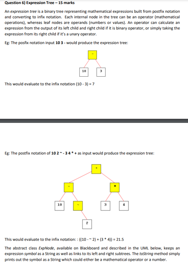 Solved Question 6) Expression Tree 15 marks An expression