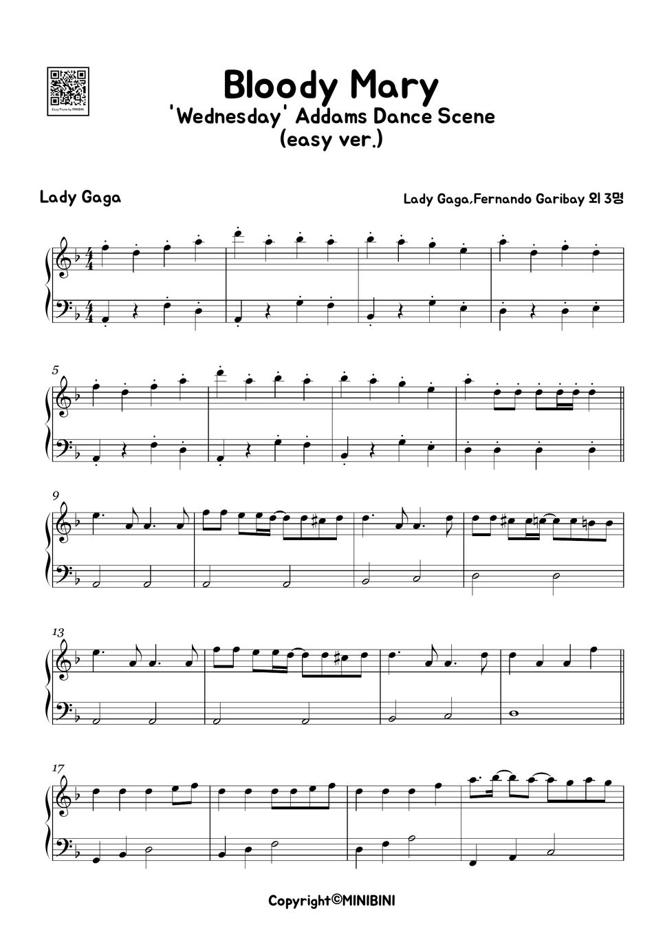Lady Gaga Bloody Mary (Easy Version) Sheets by MINIBINI