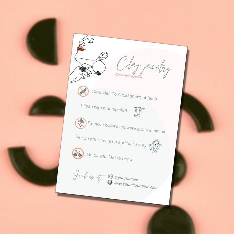 Custom Polymer Clay Care Card, Printable Jewellery Care Card, Esty