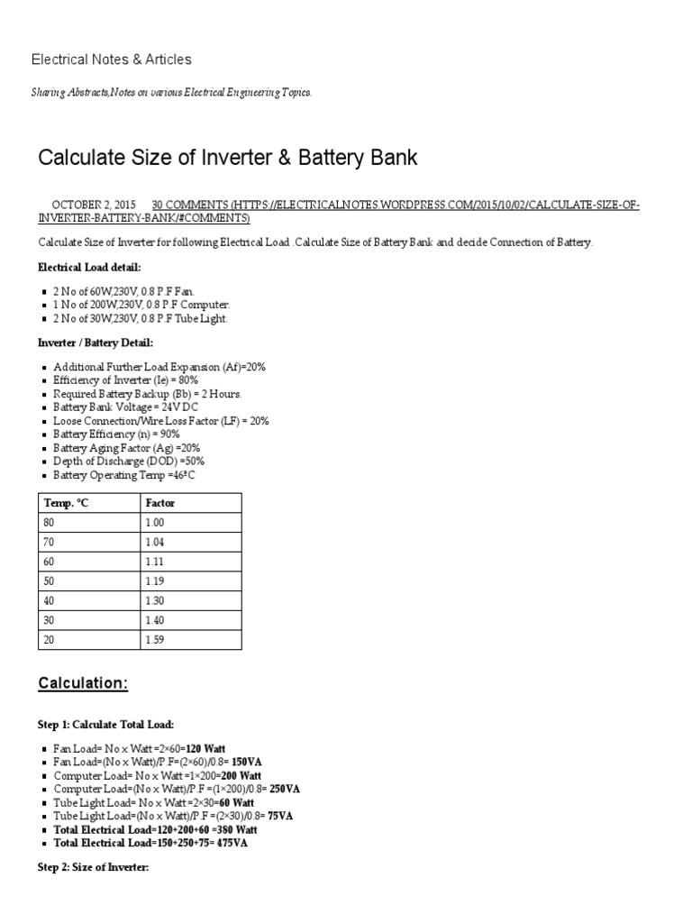 Calculate Size of Inverter & Battery Bank Electrical Notes & Articles