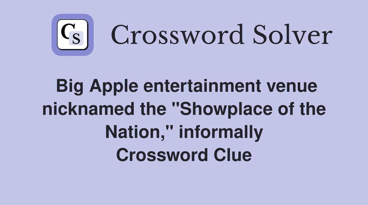 Big Apple entertainment venue nicknamed the "Showplace of the Nation Stadiums Crossword Clue stadiums crossword clue the most common solution for the crossword clue stadiums are arenas with 6 letters. all crossword answers with 5, 6 & 9 letters for stadiums found in daily crossword puzzles: stadiums is a crossword puzzle clue that we have spotted over 20 times. There are related clues (shown below). Find the latest crossword clues. Stadiums Crossword Clue.