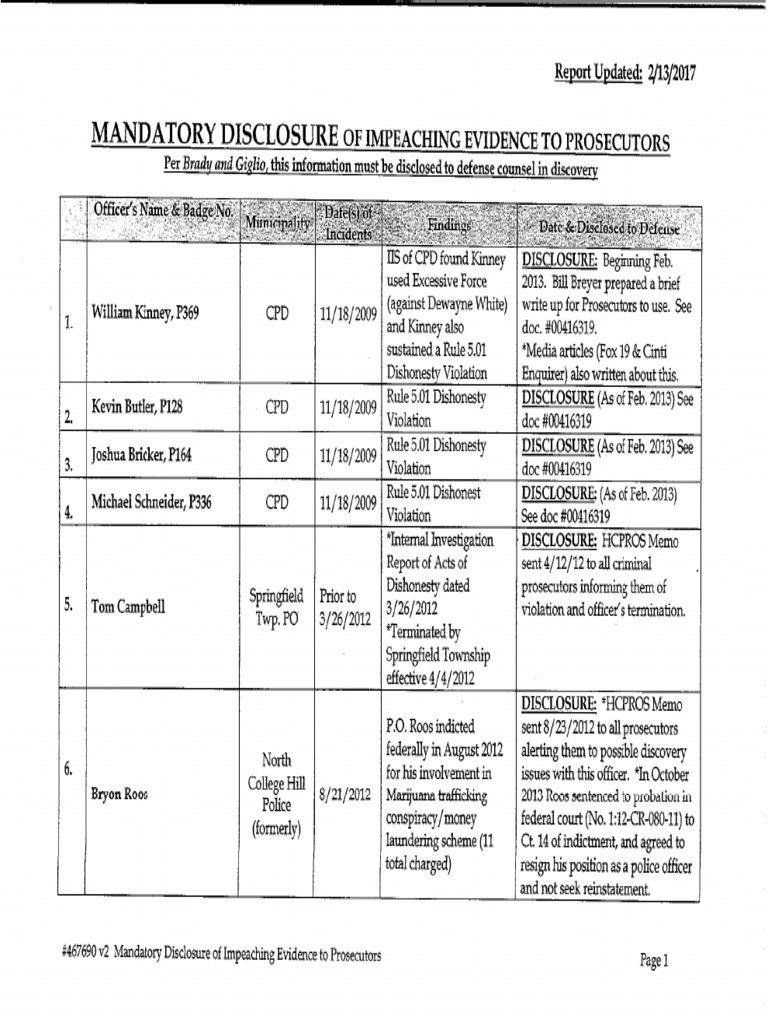 Updated Hamilton County (Ohio) Brady list Discovery (Law) Fine Brady List In Ohio There are currently 730333 individual profiles on the brady list, including: A giglio or brady list is a list compiled usually by a prosecutor's office or a police department containing the names and details of law. In april 2019, officer travis hamilton answered a knock at his front door in iowa. It was a reporter asking him about being. Law. Brady List In Ohio.