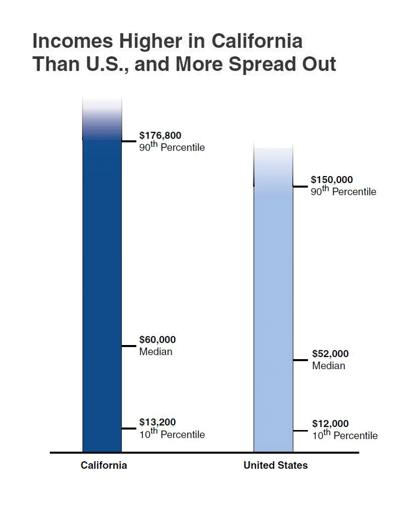 Compared to U.S., California Higher and More Spread Out