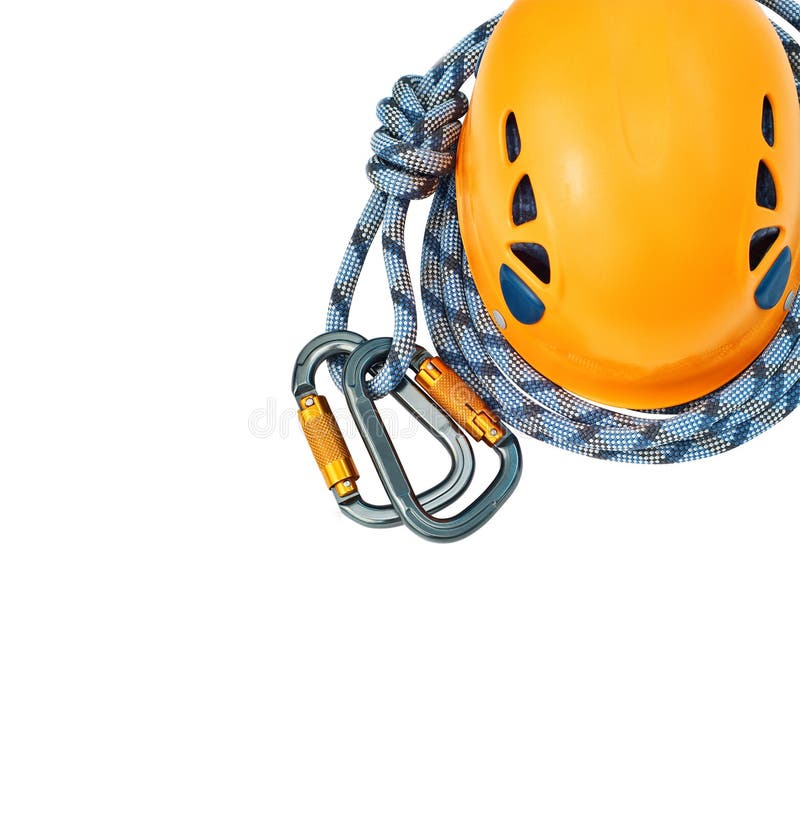 Climbing Gear Carabiners, Helmet and Rope Stock Photo Image of