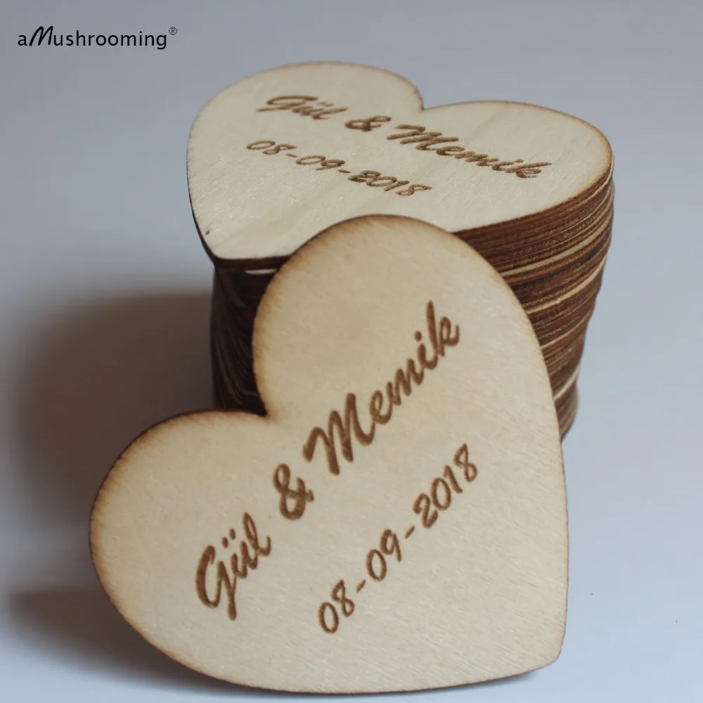 100 Personalized Heart Natural Wood Name Tags Vintage Wedding