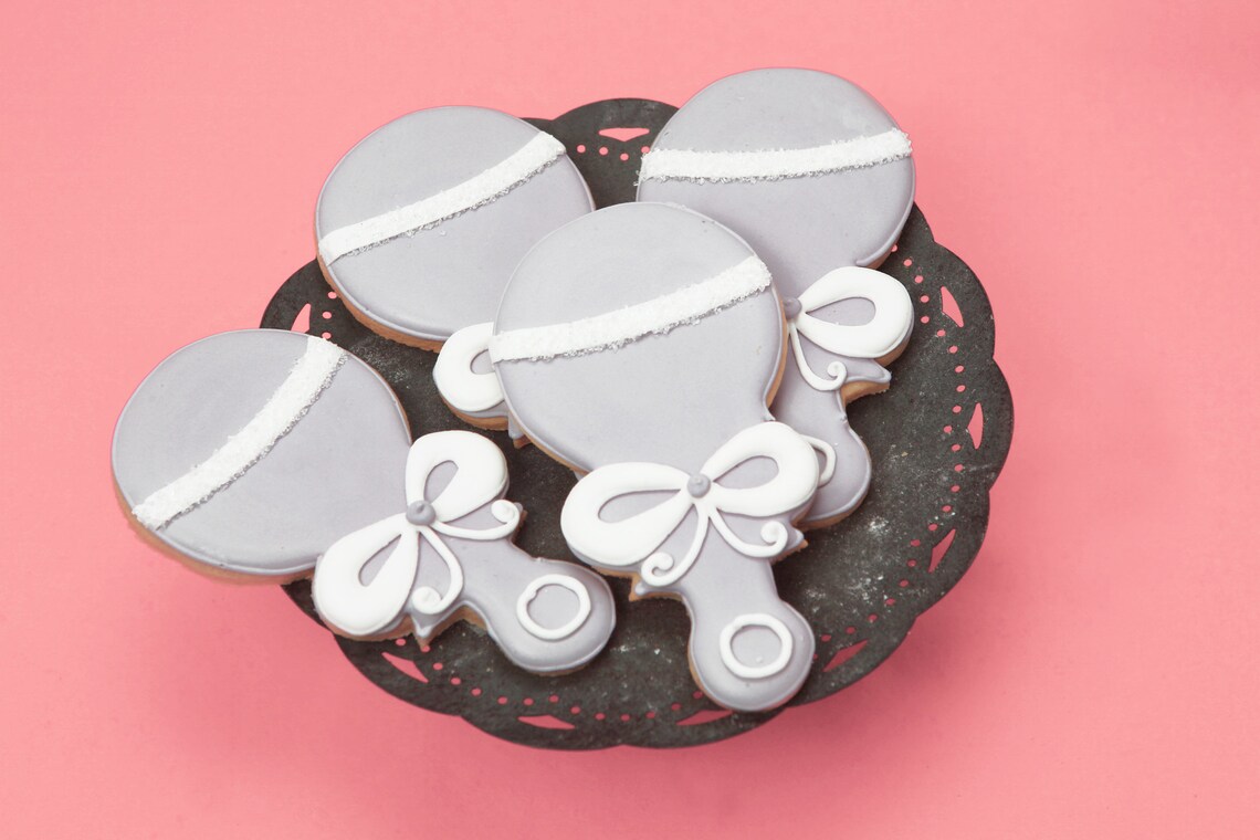 12 Gray Baby Rattle Cookies Great For Genderneutral Baby Etsy
