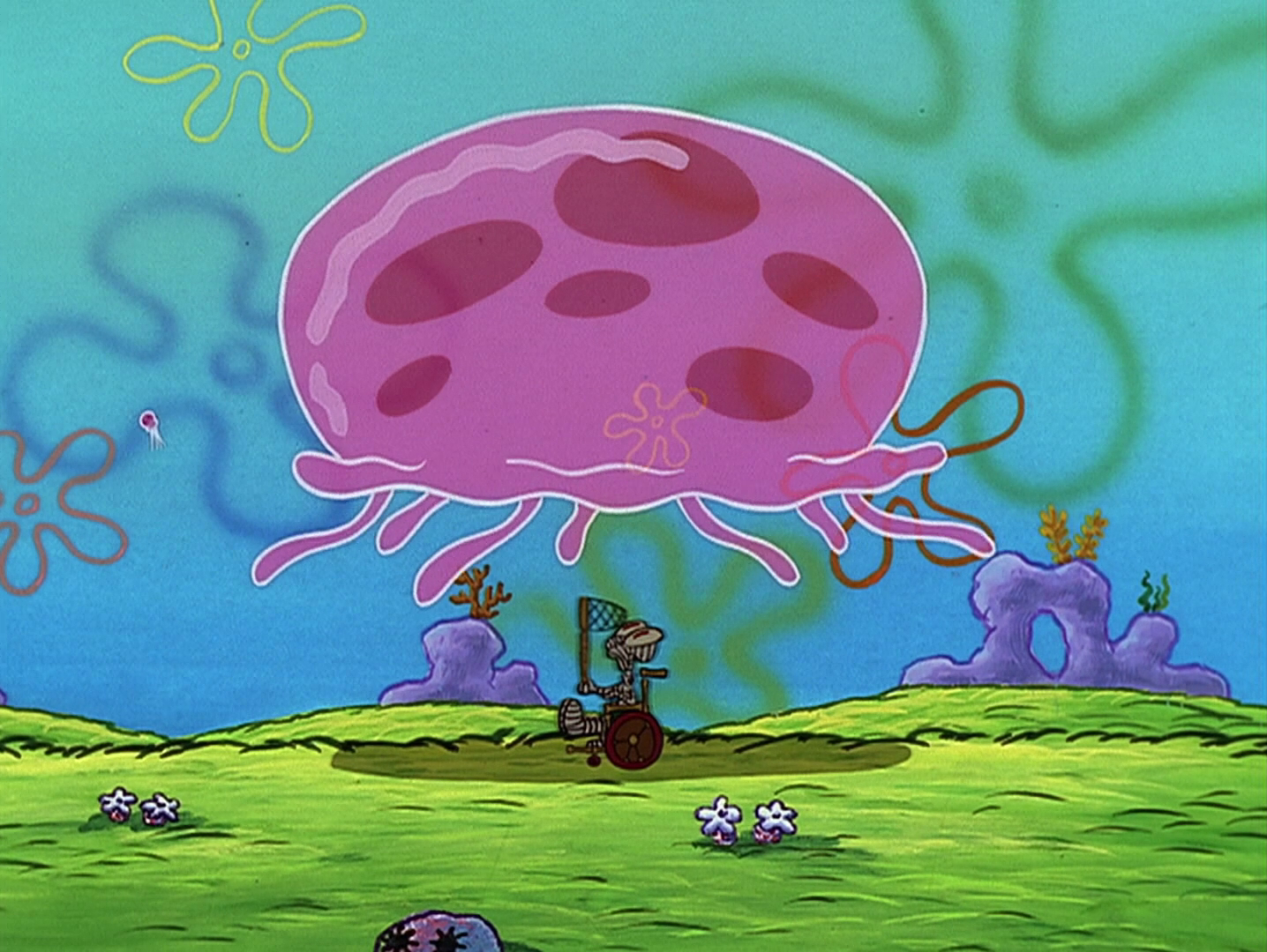 SpongeBob catching a jellyfish YouTube Spongebob Jellyfish Free They first appear in the episode tea at the treedome, as does the hobby dedicated to catching them, jellyfishing, usually at jellyfish fields. plankton's evil robots have stolen the krusty krab and it's up to you to get it back! Grab pickles, jump over platforms and dodge. play spongebob's jellyfishin' mission game and restore bikini bottom's nature! . Spongebob Jellyfish Free.