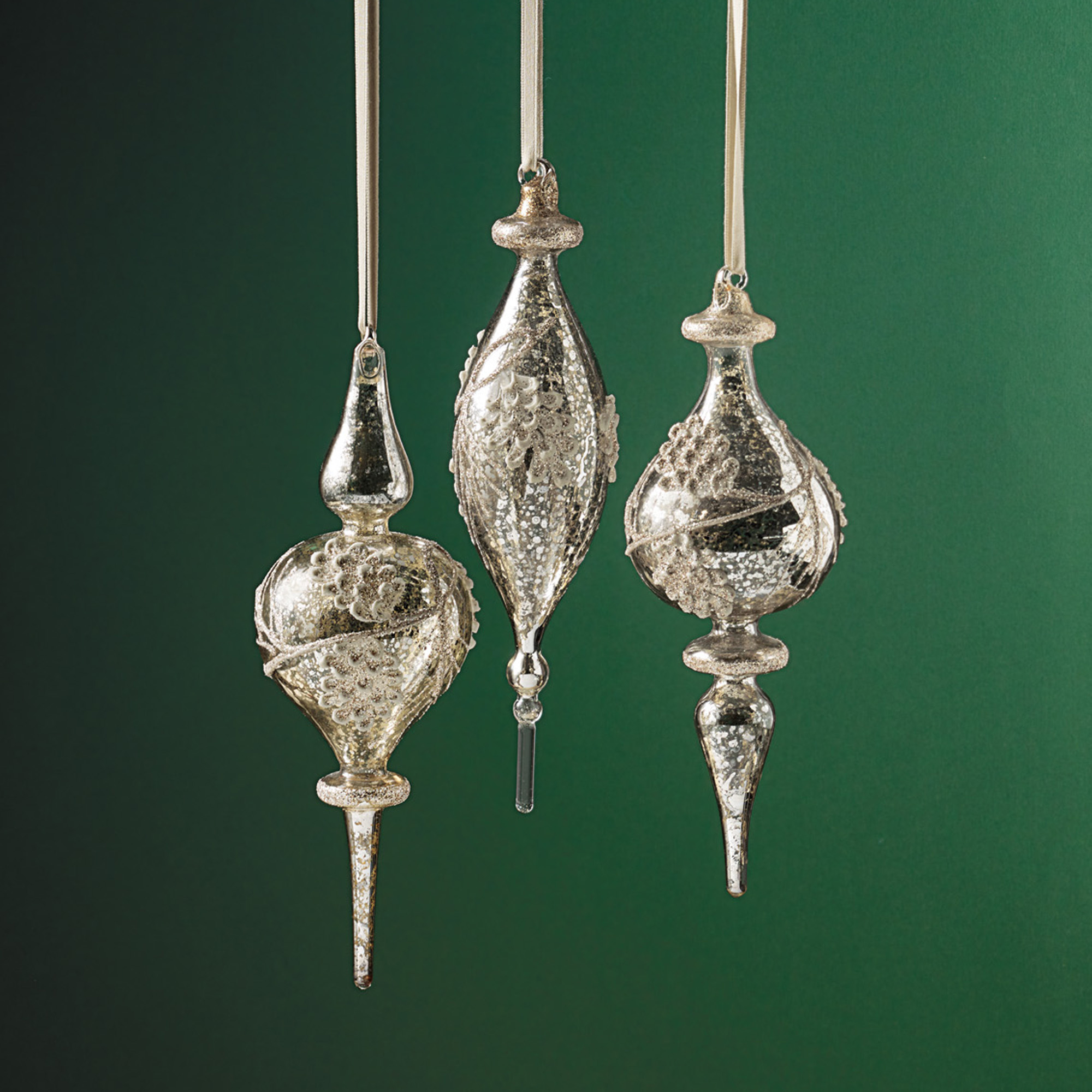 Silver Glass Finial Ornaments, Set Of 3 Gump's